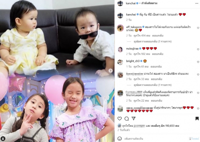 ล่าสุดสาว แอฟ ได้โพสต์ภาพ น้องมายู-ปีใหม่ โตเป็นสาวแล้ว หลังเจอกันตั้งแต่อายุ 1 เดือน พร้อมระบุข้อความว่า “สองสาวพี่ยูกับพี่ปีเจอกันตั้งแต่อายุ 1 เดือน เผลอแป๊บเดียว 7 ขวบแล้วค่ะ… เจอกันนับครั้งได้ แต่ครั้งนี้เจอกันปุ๊บต่อติดปั๊บ เล่น เต้น กันสนุกเลยค่ะ @mayfuang @kanchai”