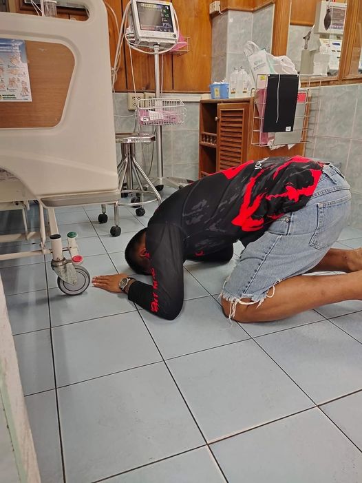 ขณะรอเคลื่อนย้ายน้องออกจากห้องไอซียู ก็กินไม่ได้ นอนไม่หลับ เพราะลุ้นอยู่ตลอด จนต้องก้มกราบแม่ธรณีของพื้นอาคารห้องไอซียู ขอชีวิตลูกดีขึ้นกว่าเดิม