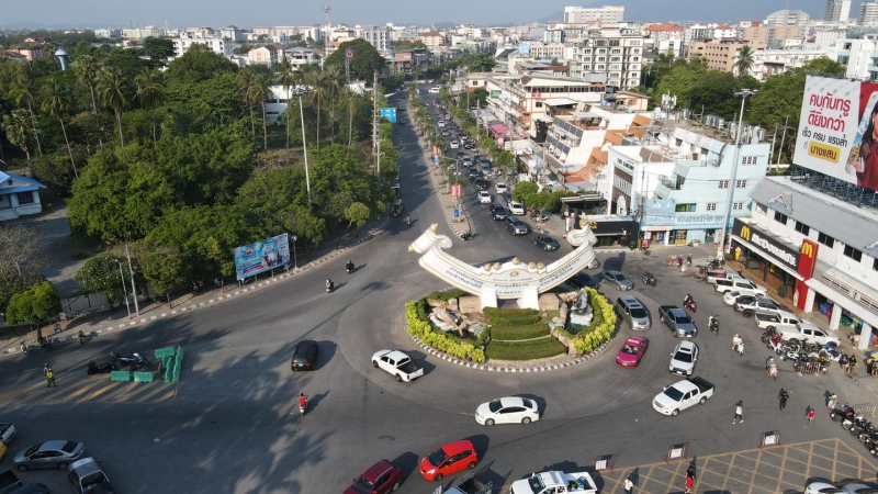 ถนนลงหาด-ถนนข้าวหลาม-ถนนมิตรสัมพันธ์-ถนนแสนสุข-ถนนเลี่ยงหนองมน การจราจรระดับ 2 คล่องตัว ไม่มีปริมาณรถสะสม