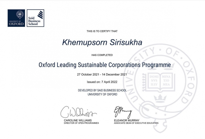 ล่าสุด เชอร์รี่ ได้โพสต์ภาพใบประกาศจาก Oxford University พร้อมกับบอกว่าเป็นตัวแทนหมู่บ้าน เพราะเป็นคนไทยคนเดียวในหลักสูตรนี้ พี่เลยตั้งใจเต็มที่เพื่อไม่ให้เสียชื่อคนไทยค่ะ และแน่นอนว่าความรู้ที่ได้จากการเรียนหลักสูตรองค์กรชั้นนำที่ยั่งยืนนี้ พี่จะนำมาต่อยอดพัฒนา sirithaibrand ให้ยั่งยืนในทุกมิติให้ได้ค่ะ