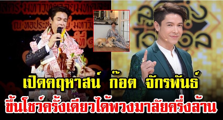 ปัจจุบันแม้หนุ่ม ก๊อต อายุจะขึ้นหลัก 5 แล้วก็ตาม แต่ก็ยังหล่อไม่สร่าง ล่าสุดเจ้าตัวได้โพสต์ภาพชวนลูกหลานมาช่วยกันแกะแม็กเอาเงินทิปที่แฟน ๆ มอบ ให้ขณะไปร้องเพลงออกมา โดยเงินดังกล่าวเต็มกระเป๋าเดินทางใบใหญ่ ก่อนจะรวบรวมเงินทั้งหมดไปนับได้มากกว่าครึ่งล้าน พร้อมเเคปชั่นว่า “ยอดเงินรางวัลที่แฟน ๆ มอบให้หน้าเวทีได้รับมาตามนี้นะครับ ได้เวลาส่งผ่านทำประโยชน์เพื่อสังคมแล้ว”