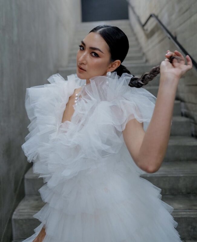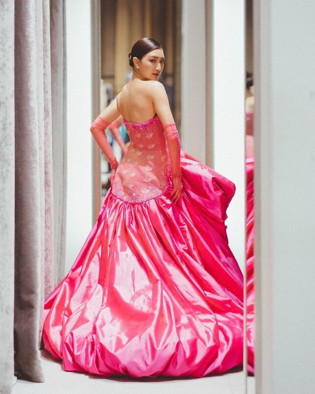 “ชุดจัดเต็มมาก เพราะว่าพี่ ๆ ดีไซน์เนอร์ที่รักกันทุกคนเต็มที่มาก คือต้องบอกว่างานนี้เป็นงานที่รวมคนรักกันจริง ๆ ทุกคนบอกว่าพี่ตั้งใจทำให้ด้วยใจ แล้วทุกคนมีสตอรี่กับแต่ละชุดที่น่ารักมากค่ะ ฟังแล้วน้ำตาจะไหล เพราะว่าเขาช่วยคิดให้เราแล้วพอออกมามันคือดีไซน์ของแต่ละแบรนด์จริง ๆ เป็นอะไรที่ประทับใจมาก ๆ ก็อยู่ในช่วงของการลองชุด เตรียมตัวเก็บรายละเอียดเรื่องของค่ะ”