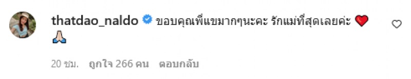 ล่าสุดทัดดาวได้เข้ามาคอมเมนท์รัศมีแข ทันที หลังรู้ว่ามาว่าตั้งแต่ตี 5 โดยได้ระบุว่า “ขอบคุณพี่แขมากๆนะคะ รักแม่ที่สุดเลยค่ะ” ซึ่งก็มีแฟน ๆ เข้ามาคอมเมนต์อวยพรให้สาว ทัดดาว หายไว ๆ กันเป็นจำนวนมาก