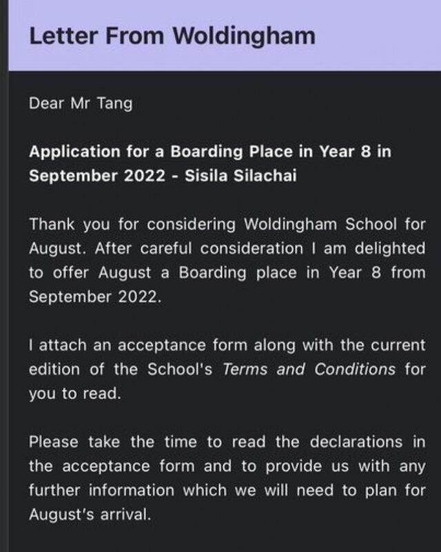 ต่อมาคุณแม่จูน ได้โพสต์ว่า เย้ๆๆๆๆๆ ให้กำลังใจพี่ออนะคะ อดตาหลับ ขับตานอน ติวสอบเข้าโรงเรียนที่อังกฤษ แบบเข้มมาก แล้วผลออกมาว่าพี่ออกัสสอบติด Woldingham School อยากกินไรเด๋วพรุ่งนี้แม่พาไปกินนะคะพี่ออ เจ้าตัวยังไม่รู้หลับไปแล้วผลเพิ่งออกเมื่อกี้ ขอบคุณพี่ ๆ ทุกคนที่ส่งกำลังใจให้พี่ออนะคะ เด๋วให้พี่อออ่านนะคะ รัก ซึ่งพ่อเปิ้ลก็ได้มาคอมเม้นท์ว่า ไม่ให้ไป