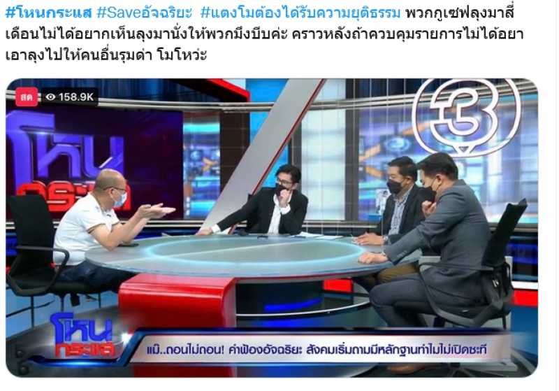 คุณไม่รู้หรอกว่าเวลาพลเมืองดีทำคดี แล้วไม่ใช่เรื่องของตัวเอง ไปยุ่งเรื่องของเขา แล้วโดนฟ้องคุณรู้ไหมมันเจ็ บ ป ว ด เสียเงินด้วย อย่างคดีแตงโม ผมใช้เวลาถึง 4 เดือน แล้วมาเจอรายการโหนกระแสทำกับผมแบบนี้ คุณคิดว่าผมไม่เสียความรู้สึกเหรอ ครอบครัวผมก็มีชีวิตจิตใจ ครอบครัวผมก็เสียความรู้สึก