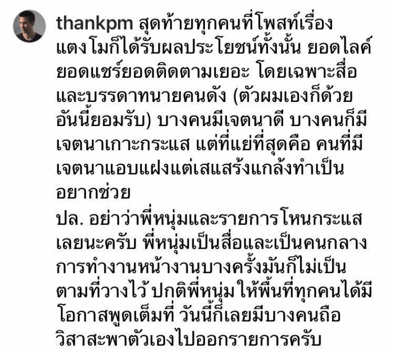 ต่อมาหนุ่ม หนุ่ม แต๊ง พงศกร ได้โพสต์ข้อความระบุว่า