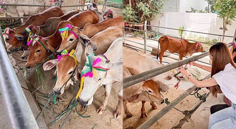 ซึ่งก่อนหน้านี้สาว เนย ได้ถือโอกาสทำบุญวันเกิดล่วงหน้า อายุครบ 37 ปี โดยควงสามี ไฮโซอาร์ม ทำบุญในนามครอบครัว พร้อมกับเพื่อน ๆ ในวงการอย่าง เบนซ์ ปุณยาพร และกระแต ศุภักษร ก็มาร่วมทำบุญไถ่ชีวิตโคด้วยกัน งานนี้สาว เนย ได้เผยเรื่องราวดี ๆ ในวันทำบุญว่า ก่อนวันเกิดปีนี้ตั้งใจจะเลิกทานวัวตลอดชีวิต เลยอยากมาไถ่ชีวิตน้องด้วยตัวเอง 5 ตัว และของเพื่อน ๆ ร่วมมาอีก 1 ตัว ขอให้ปลอดภัย สุขภาพแข็งแรง