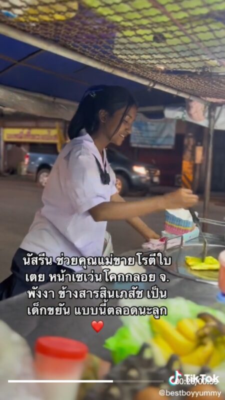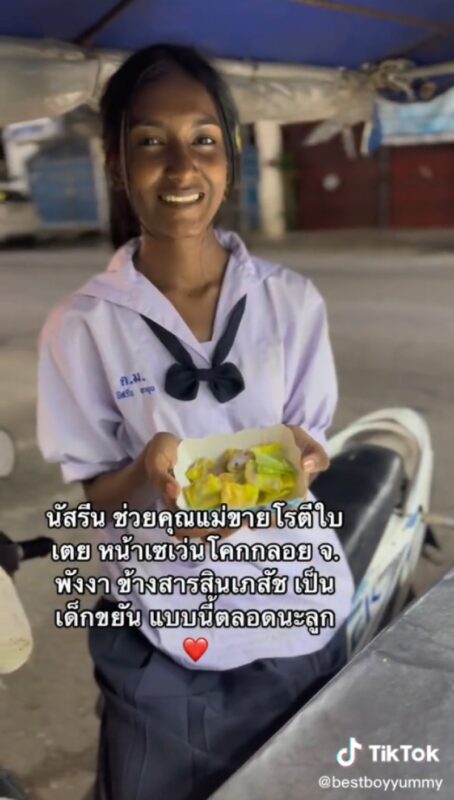 ต้องบอกว่าเป็นเรื่องราวที่กำลังได้รับความสนใจในโลกออนไลน์ค่อนข้างมาก เมื่อผู้ใช้ TikTok รายหนึ่ง ได้เผยคลิป น้องนัสรีน บุตรสาวแม่ค้าโรตีวัย 16 ปี ที่มาช่วยคุณแม่ทำงาน พร้อมบอกว่า เจอเพชรเม็ดงามแล้ว