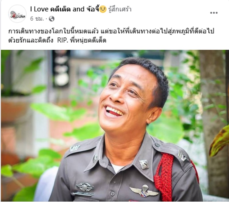 ซึ่งเพจดังกล่าวได้โพสต์ภาพของ หนุ่ย ค ดีเ ด็ ด พร้อมระบุข้อความว่า “การเดินทางของโลกใบนี้หมดแล้ว แต่ขอให้พี่เดินทางต่อไปสู่ ภ พ ภู มิ ที่ดีต่อไป ด้วยรักและคิดถึง R I P. พี่หนุ่ยค ดีเ ด็ ด”