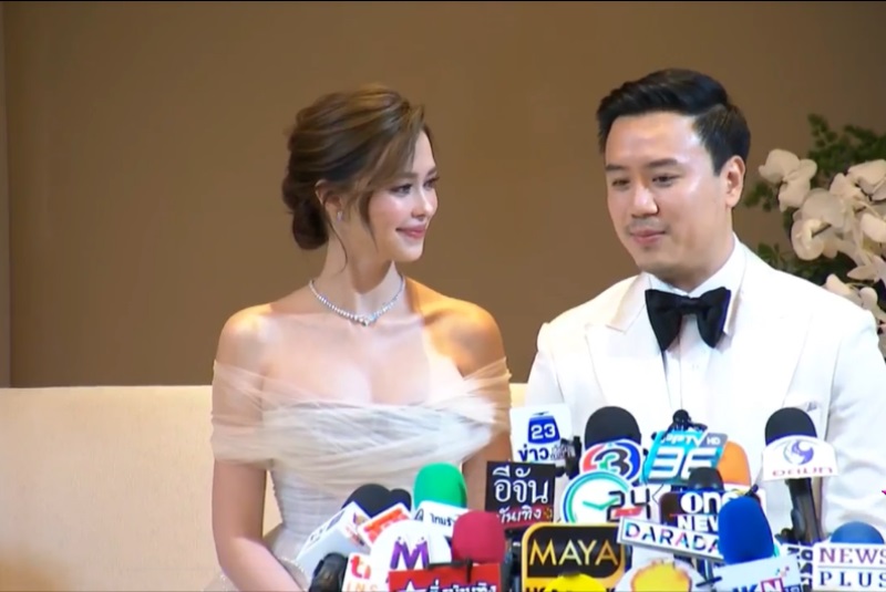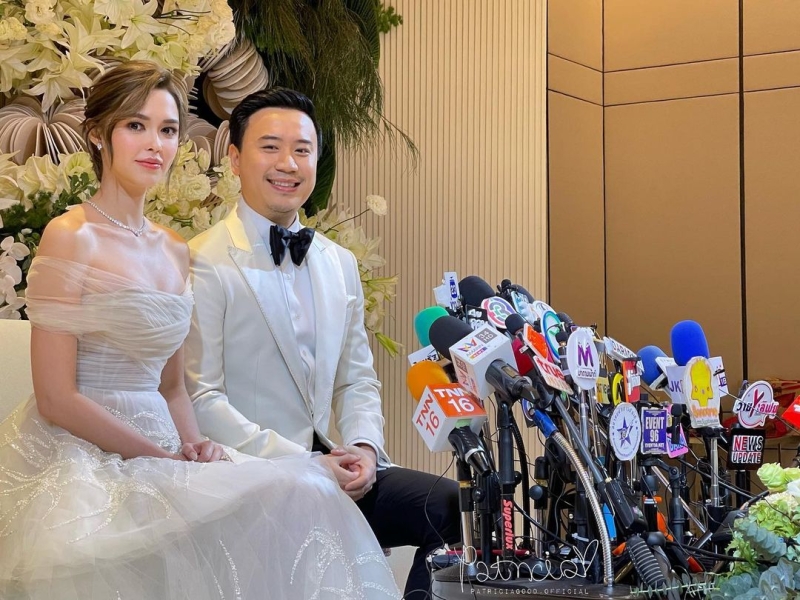 ต้องบอกว่าทั้ง เจ้าสาว-เจ้าบ่าว สวยหล่อดูดีมาก ๆ โดยในช่วงบ่าย แพทริเซีย-โน้ต ได้ออกมา แ ถ ล ง ข่ า วกับสื่ อม ว ลช น ซึ่งหนุ่ม โน้ต เผยถึงสิ นส อ ดในงานแต่งครั้งนี้ว่า