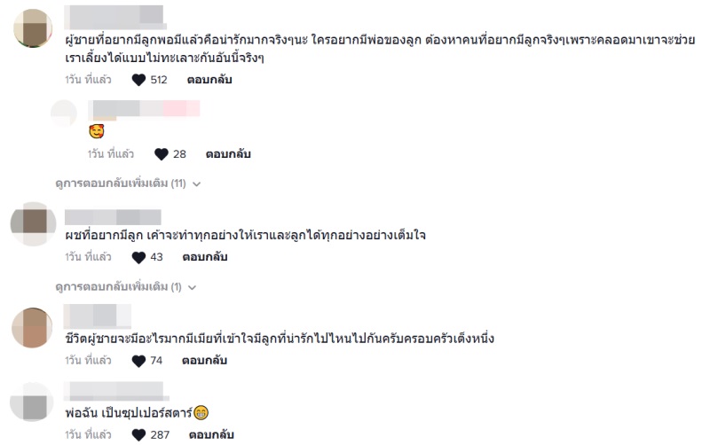 ใครอยากมีพ่อของลู ก ต้องหาคนที่อยากมีลู กจริง ๆ เพราะเขาจะช่วยเราเลี้ ย งได้แบบไม่มีปั ญห ากันอันนี้จริง ๆ, ชีวิ ตผู้ชายจะมีอะไรมาก มีเ มี ยที่เข้าใจ มีลู กที่น่ารัก ไปไหนไปกันครับ ครอบครัวเต็งหนึ่ง เป็นต้น